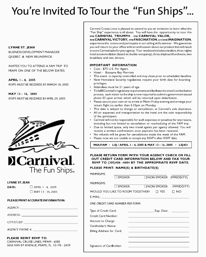 • Carnival peut changer les dates ou annuler l'événement à sa seule discrétion.